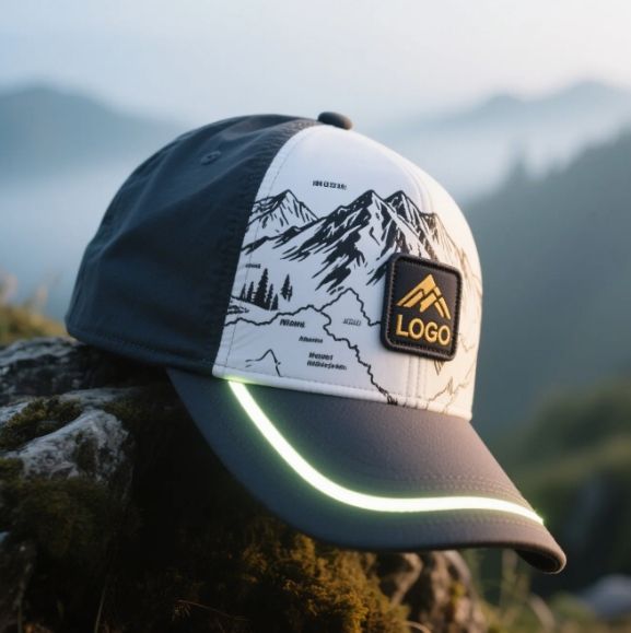 6 Panel Promotional Cotton snow mountain pattern printing Blank outdoor Baseball Cap with Custom LOGO