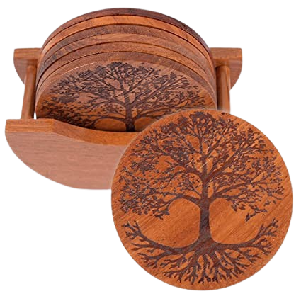 Top Selling 6 Pcs Laser Design Wooden Coasters Wood Stone Table Decor Accessories Kitchenware Coffee Mats & Pads Wholesale Price