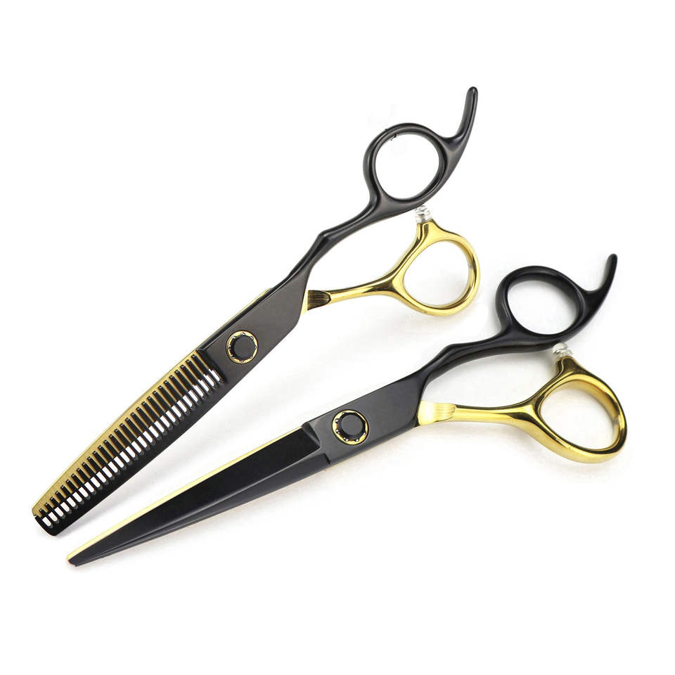 6 Pcs Salon Hair Cutting Scissors Set Black Color Barber Thinning Shears Kit With Shaving Razor and Case for Men