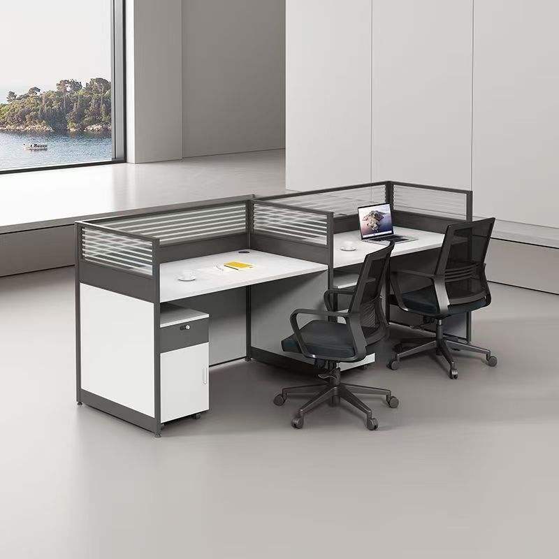 6 Person Modern Durable Modular Office Desk with Drawers and Chair Set Staff Cubicle Partition Workstation