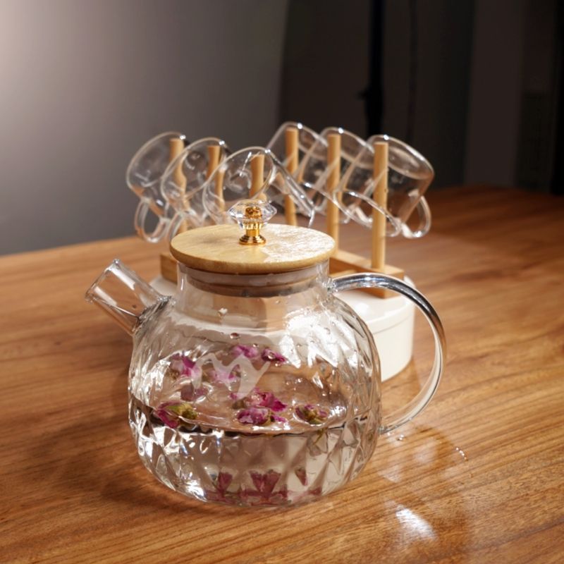 6-Piece High Borosilicate Glass Mug Pitchers with Bamboo Lid Set of Glass Jug for Tea or Coffee Serving