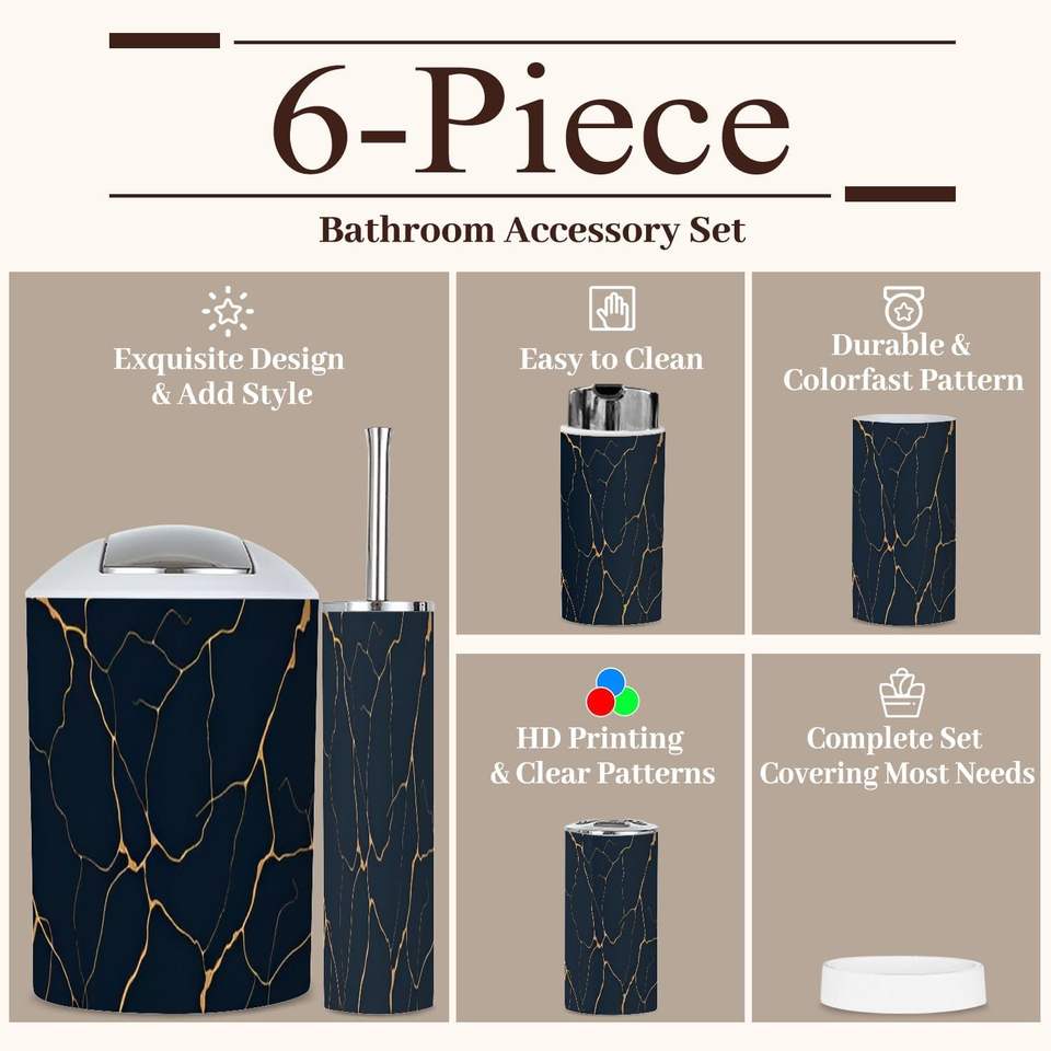 6 Piece White Marble Texture Steel Bathroom Accessories Set Invitation Headers Website Print Ads Home Decor Stock