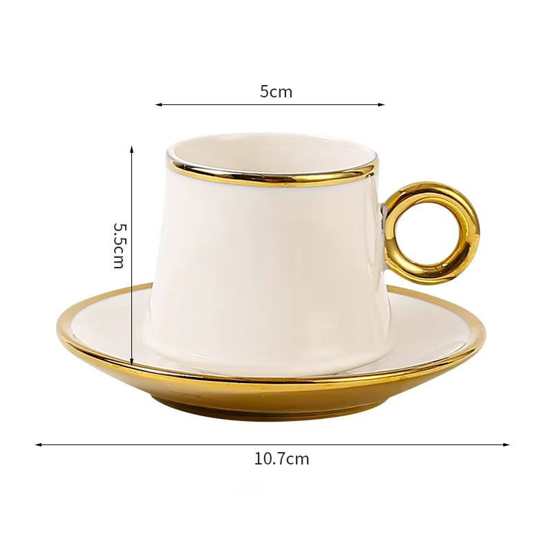 6 Pieces Ceramic Cup Saucer Gift Set Gold Plated Coffee Cup&Saucers Set