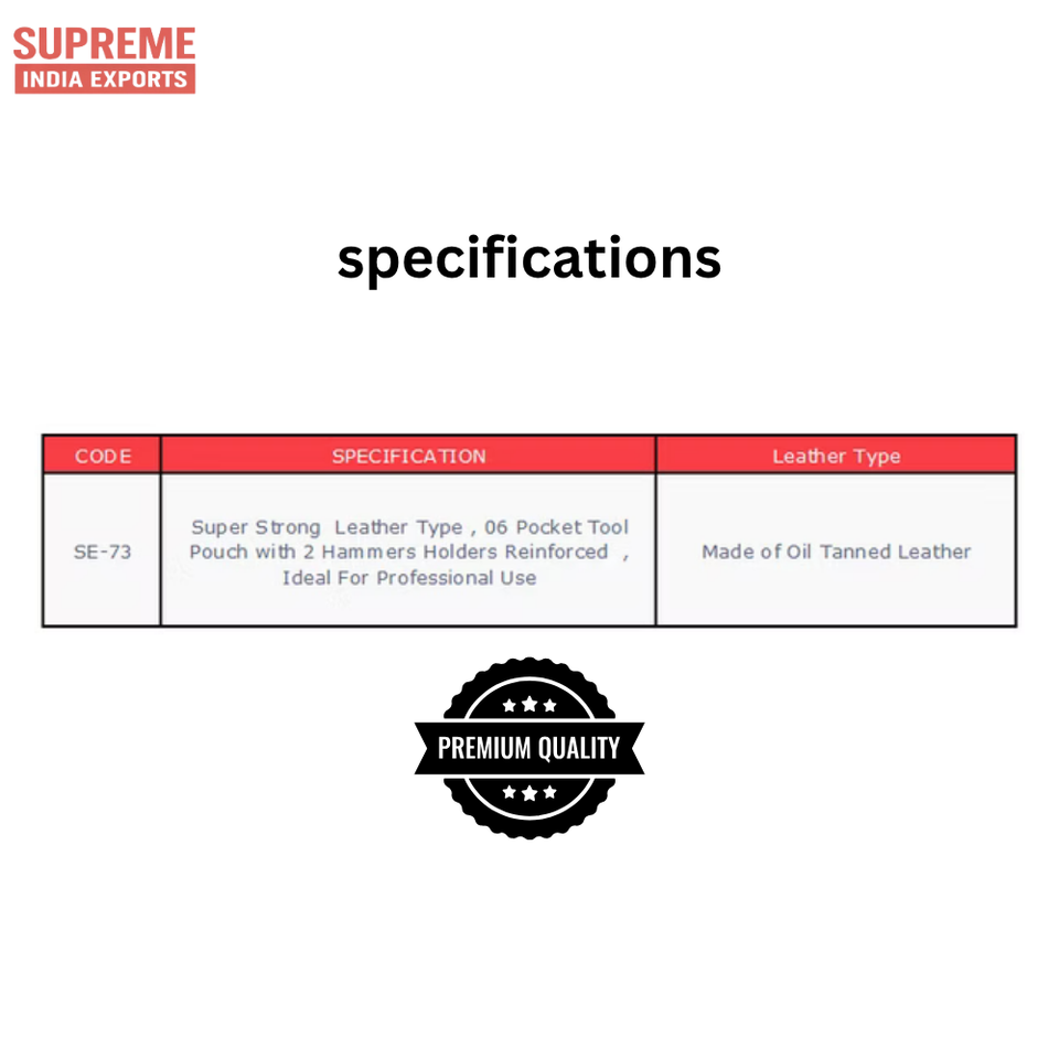 6 Pocket Leather Tool Pouch with 2 Hammer Loops | Oil Tanned Heavy-Duty Belt Holster for Professionals