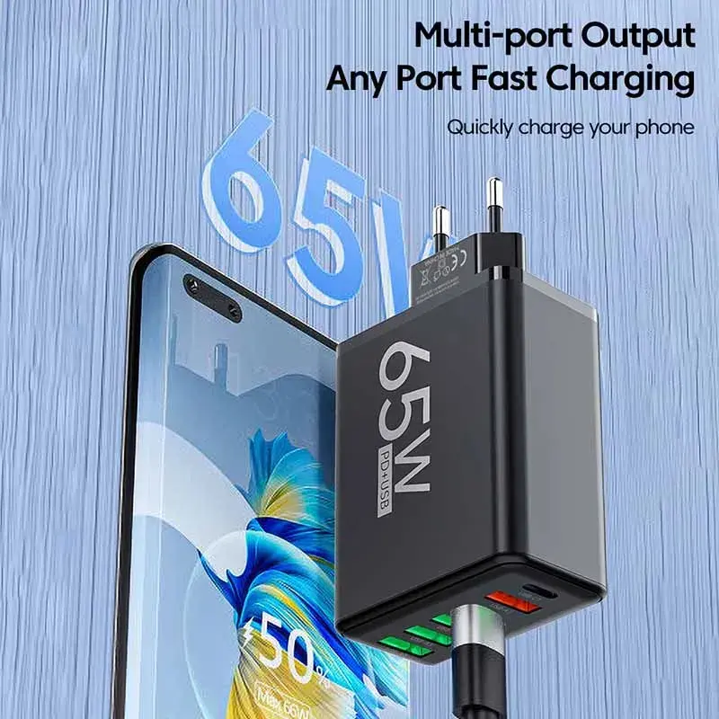 6 Port USB Type C 65W PD Fast Charging Phone Wall Charger Adapter for Phone 16 15 14 13 12 11 Pro Max for Xiaomi