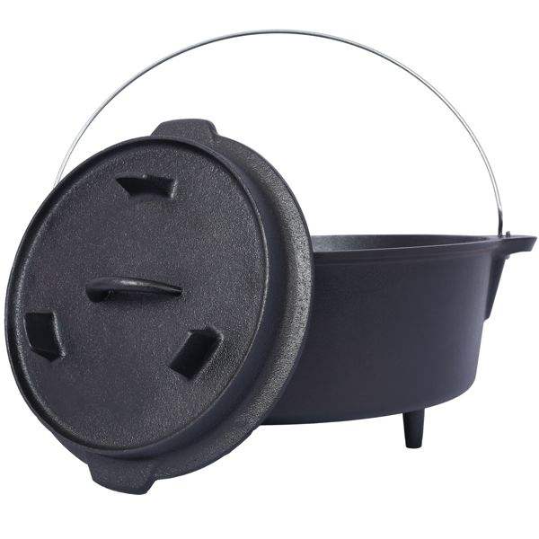 6 Quart Pre-Seasoned Cast Iron Dutch Oven Outdoor Camping Deep Pot Skillet Lid Campfire Leg Base for Fireplace Cooking BBQ