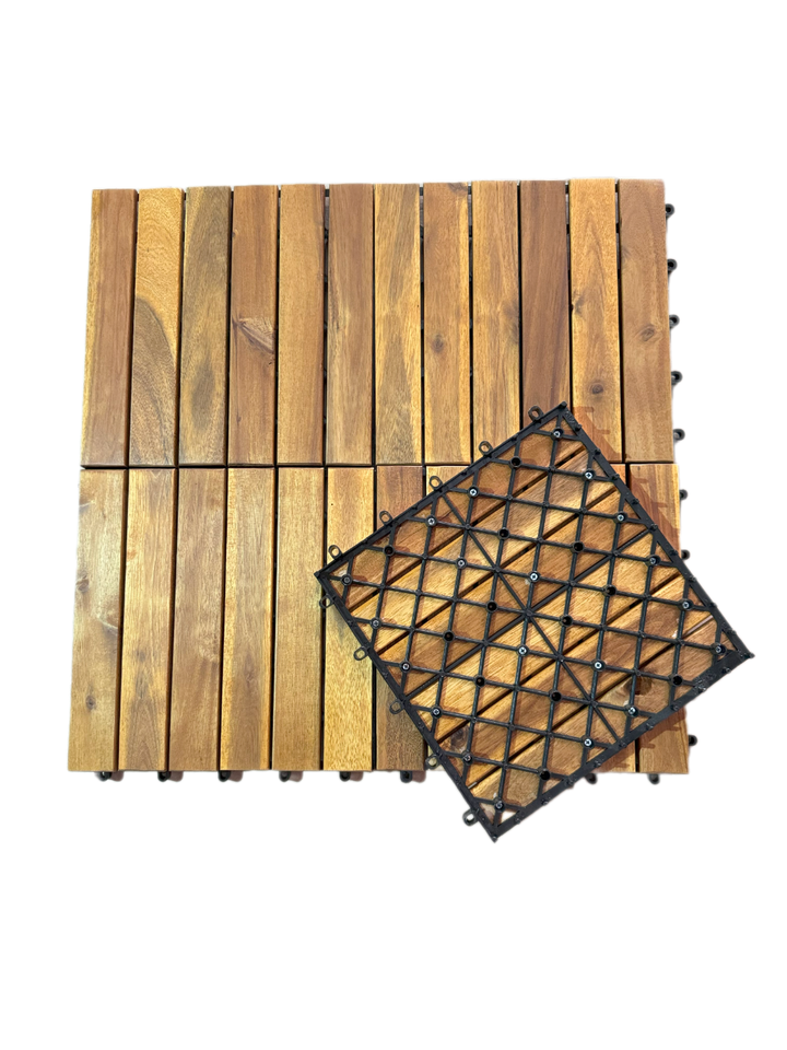 6 Slats Acacia Solid Wood Interlocking Decking Tiles Garden Design 300*300 mm Easy to Assemble Environmentally Friendly