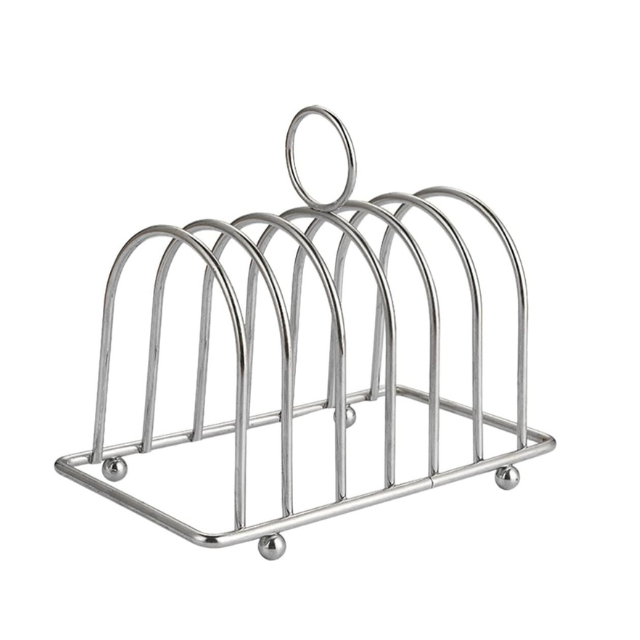 6 Slice Slot Toast Rack Holder Stainless Steel Toast Holder Stand Breakfast Carry Bread Loaf Stand with Ball Feet and Carry Hand