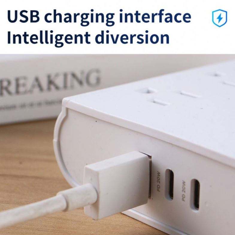 6 Way Sockets AC Power Socket Board with Switch and 2 Type C Fast Charging USB Ports 125V/15A Copper Material for Hospital Use
