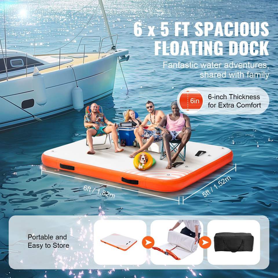 6 X 5FT Non-Slip Inflatable Floating Dock Platform with Portable Carrying Bag Water Amusement Facility