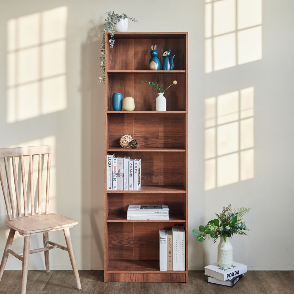 6-grid Solid-core Adjustable Bookcase Adopts E1 Board Walnut Color