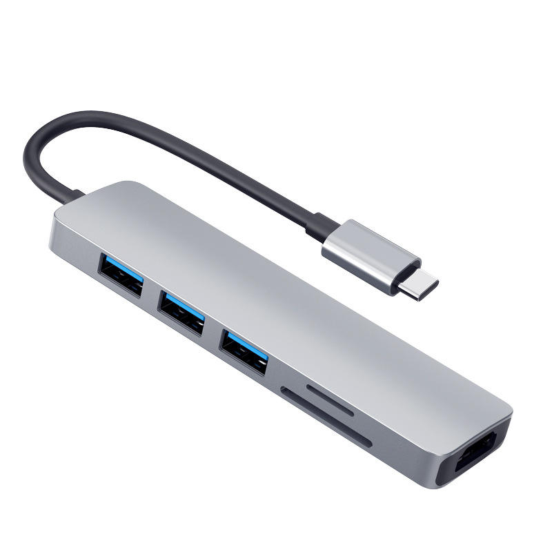 6 in 1 USB Type C HUB with to 4K@60Hz HDMIStation, USB 3.0 Ports, SD/TF Card Reader