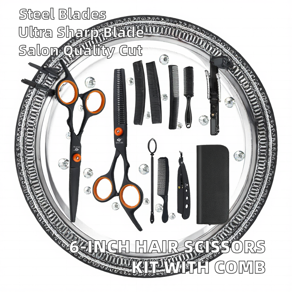 6-inch Sharp Stainless Steel Hairdressing Scissors Kit Household Hair Beauty Tools Comb Thinning Shears Barber Scissors Set