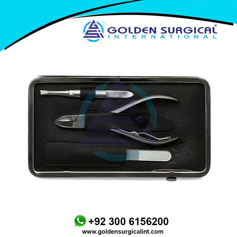 6-piece Custom Manicure Set with crystal nail file, in Black Leather Case Premium Manicure Set Cheap Price