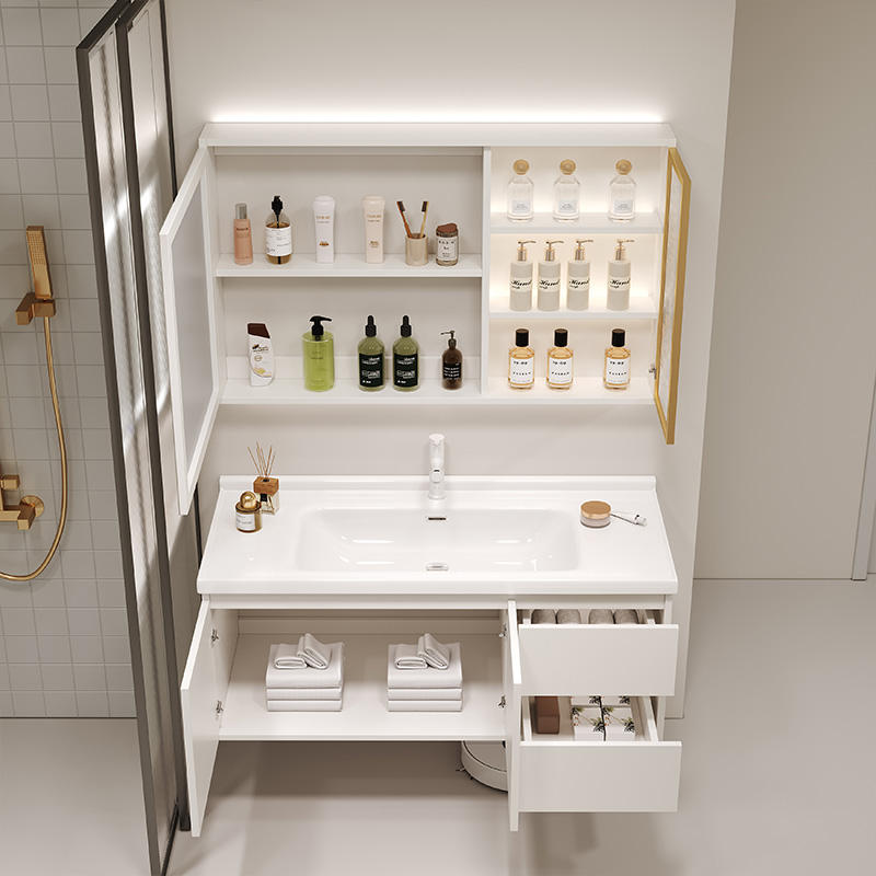 60 Inch Double Sink Bathroom Vanity Set with LED Mirror, Marble Countertop & 2 Drawers, Waterproof Wood Cabinet for Home