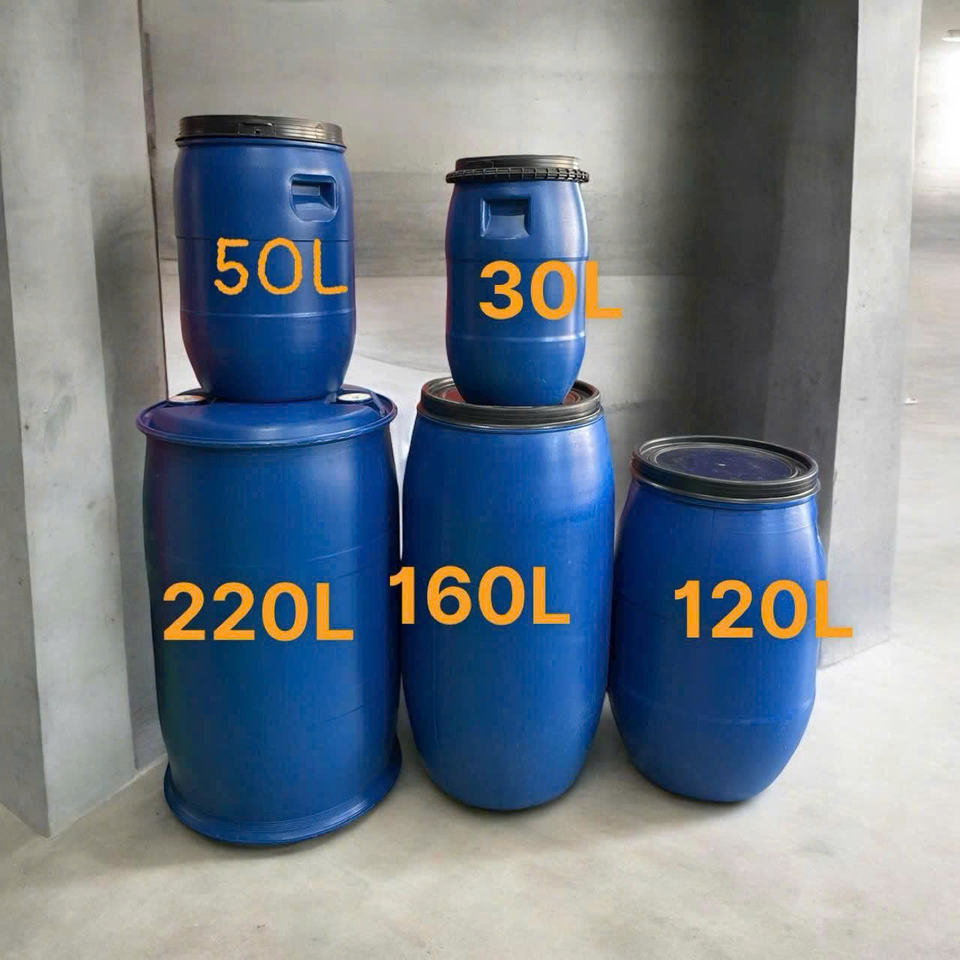 60 L HDPE Blue Drums Open Top Plastic Chemical Barrels Containers With Iron Hoop Rings From Viet Nam