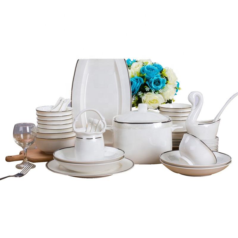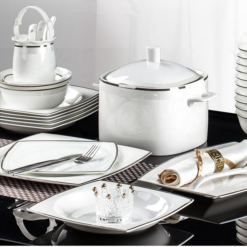 60 Pcs Porcelain Bone China Dinnerware Sets Europe Light Luxury Silver Edge Minimalist Cup Kit Wedding Gift Restaurant Hotel