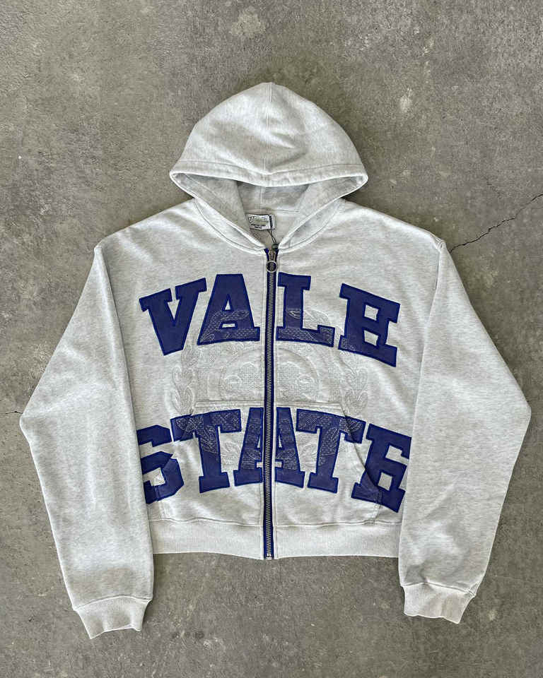 600GSM 1000GSM Custom Embossed Logo Oversized Distressed Embroidery Patch Applique Essential Acid Wash Zip up Boxy Men Hoodie