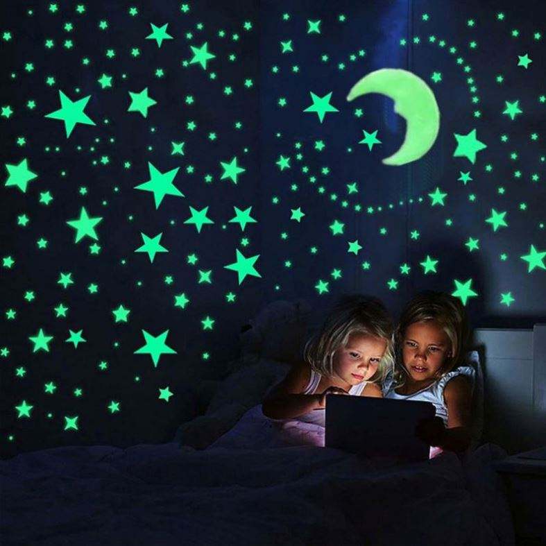 600PCS/SET Luminous Star Meteor Moon Wall Stickers for Kids' Rooms & Bedrooms PVC Material UV Printed 3D Decoration