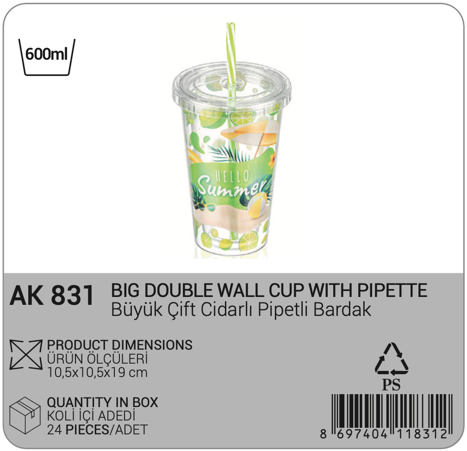 600ml Double Wall Koi Design Insulated Tumbler Hello Summer Straw Cup for Cold & Hot Drinks Travel Outdoor Use