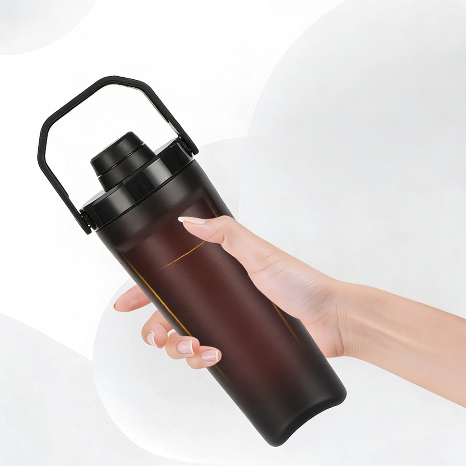 600ml Eco-Friendly Stainless Steel Shaker Water Bottle with Handle Lid Leak-Proof Vacuum Insulated Tumbler for Hot & Cold Drinks