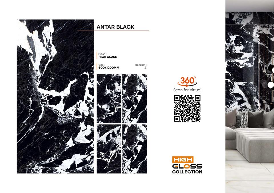 600x1200 mm Mirror Look Polished Premium Porcelain Tiles Antara Black High Gloss Finish 60x120 cm Tiles For Living Room