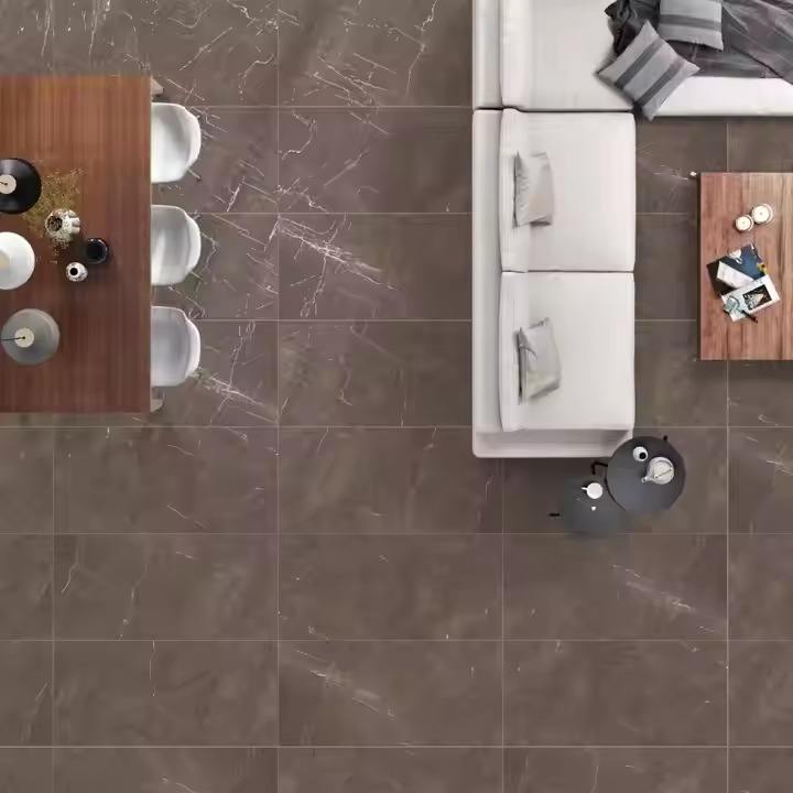 600x1200mm Glazed Ceramic Porcelain Vitrified Wall Floor Tiles with Terrazzo Carving Retro Design Series Pulpis Brown