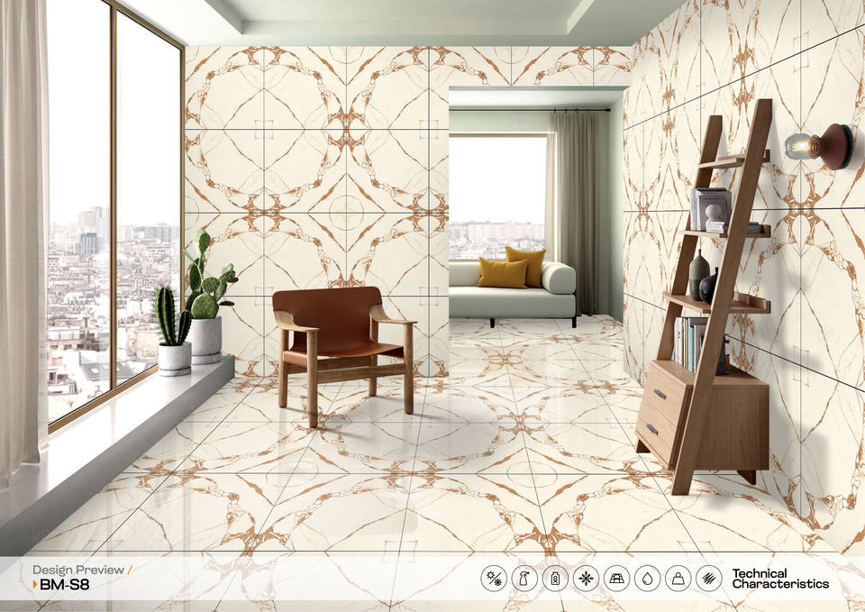 600x600mm Matching Design Polished Porcelain Tiles BM S8-Glossy Finish Top Grade 60x60cm Book Match Design Tiles For Wall &Floor