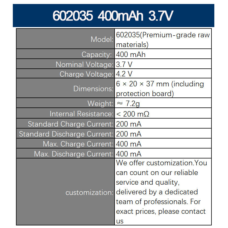 60*20*37mmBattery Size