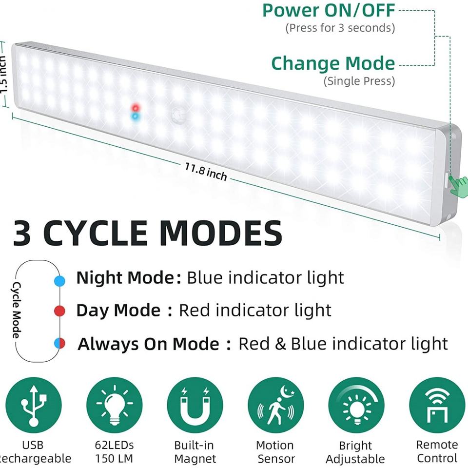 60led with Remote Control Wireless Motion Sensor Night Light USB Recharging Strip Under Cabinet Light