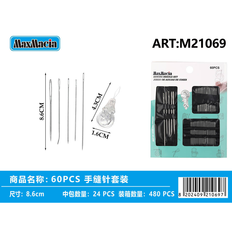 60pcs Steel Hand Sewing Needle Set with Crochet Hook DIY Projects and Repairs Sewing Kit
