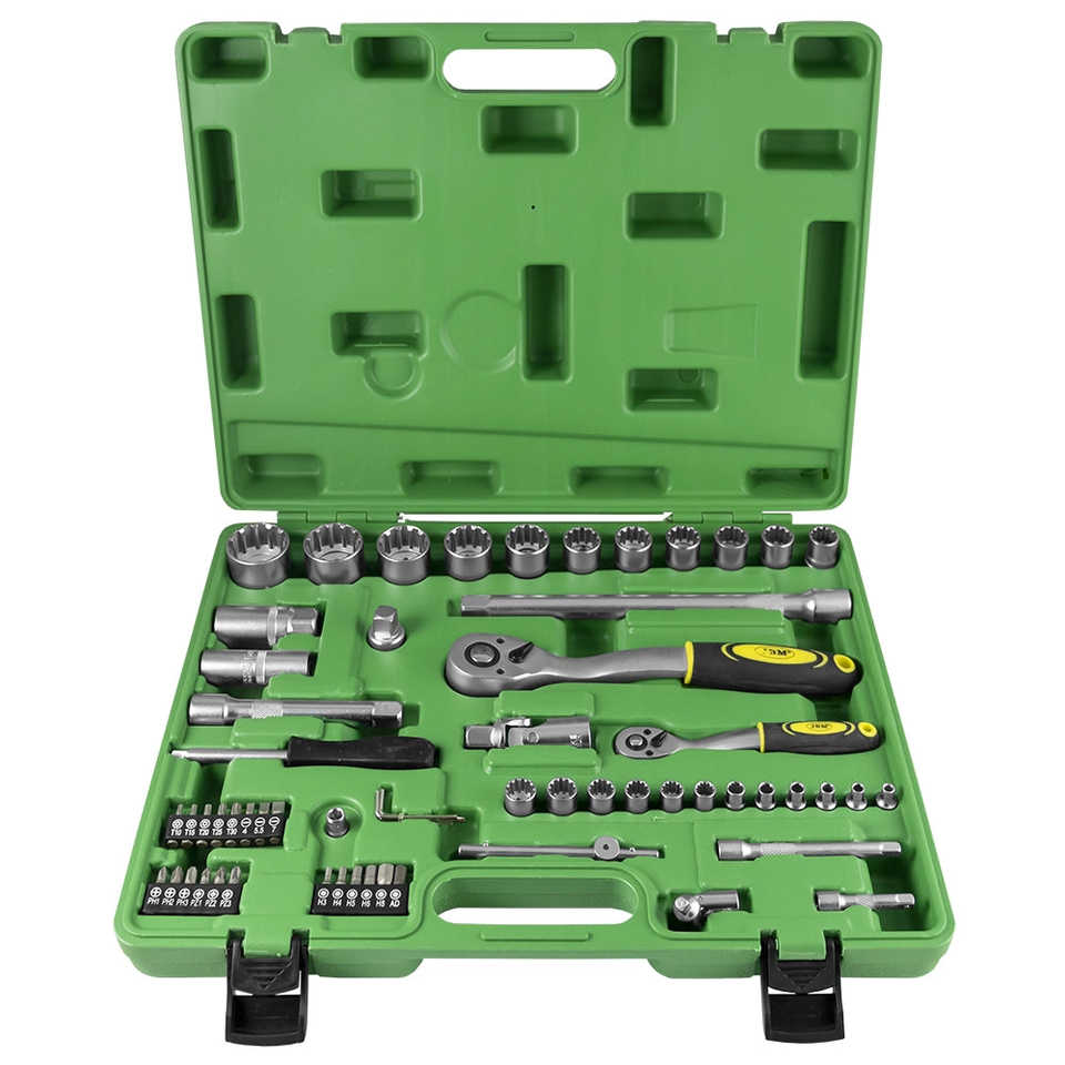 Tool case with 61-piece ribbed sockets