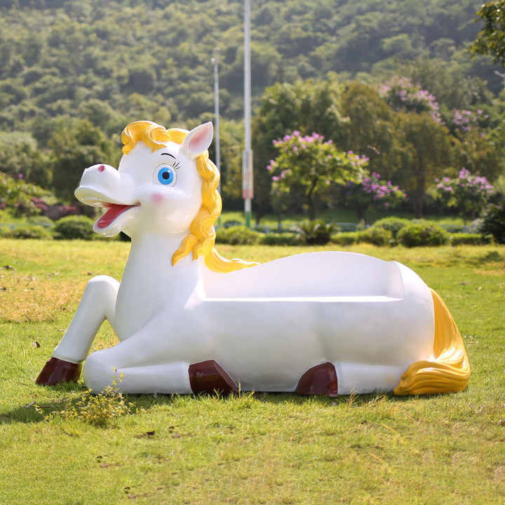 621G White Horse Fiberglass Benches & Chairs Outdoor Garden & Public Shopping Mall Leisure Furniture for Hospitals