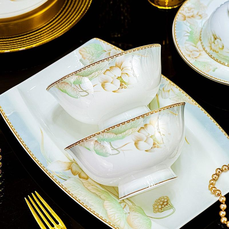 62PCS Bone China Dinnerware Sets Luxury Golden Ceramic Dishes Plates and Bowls Set Flower Tableware