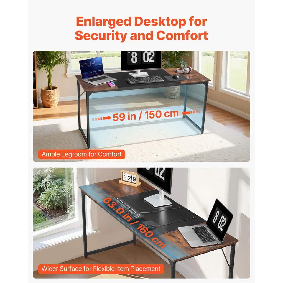 63-Inch Modern Simple Metal Frame Computer Desk for Home Office for Gaming Writing Study Large Workspace Comfortable Leather