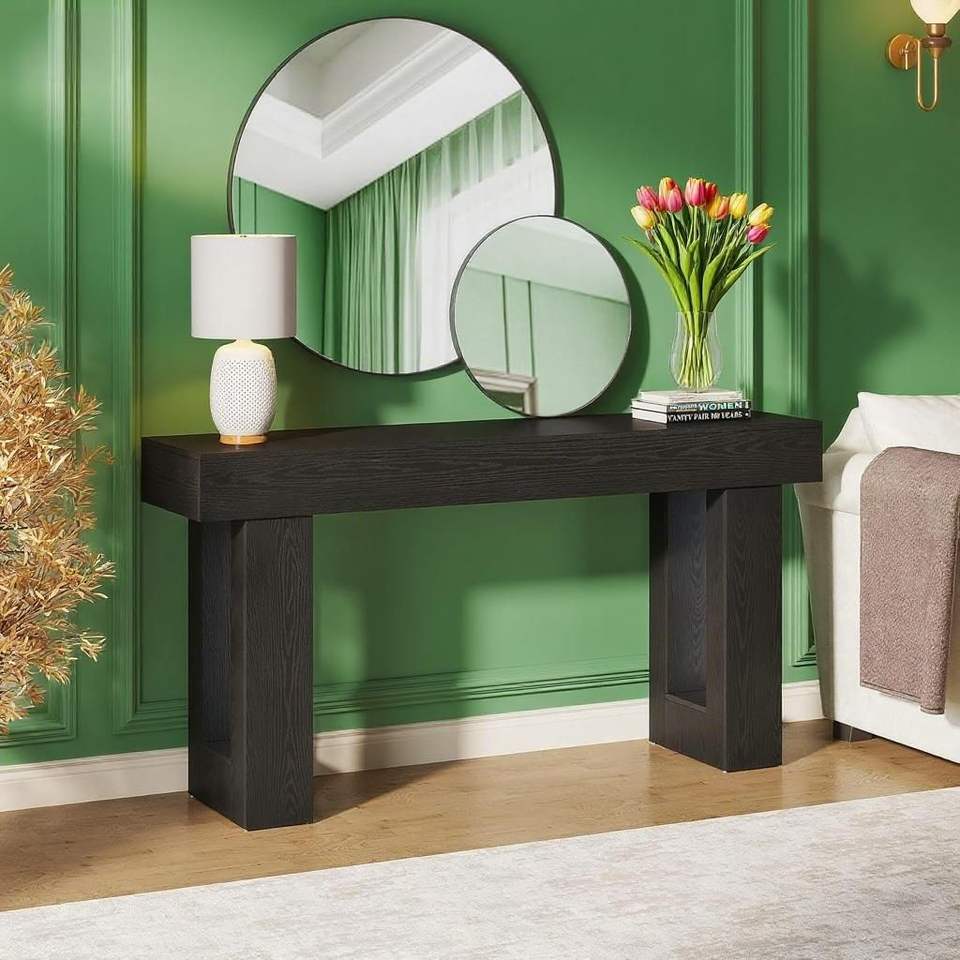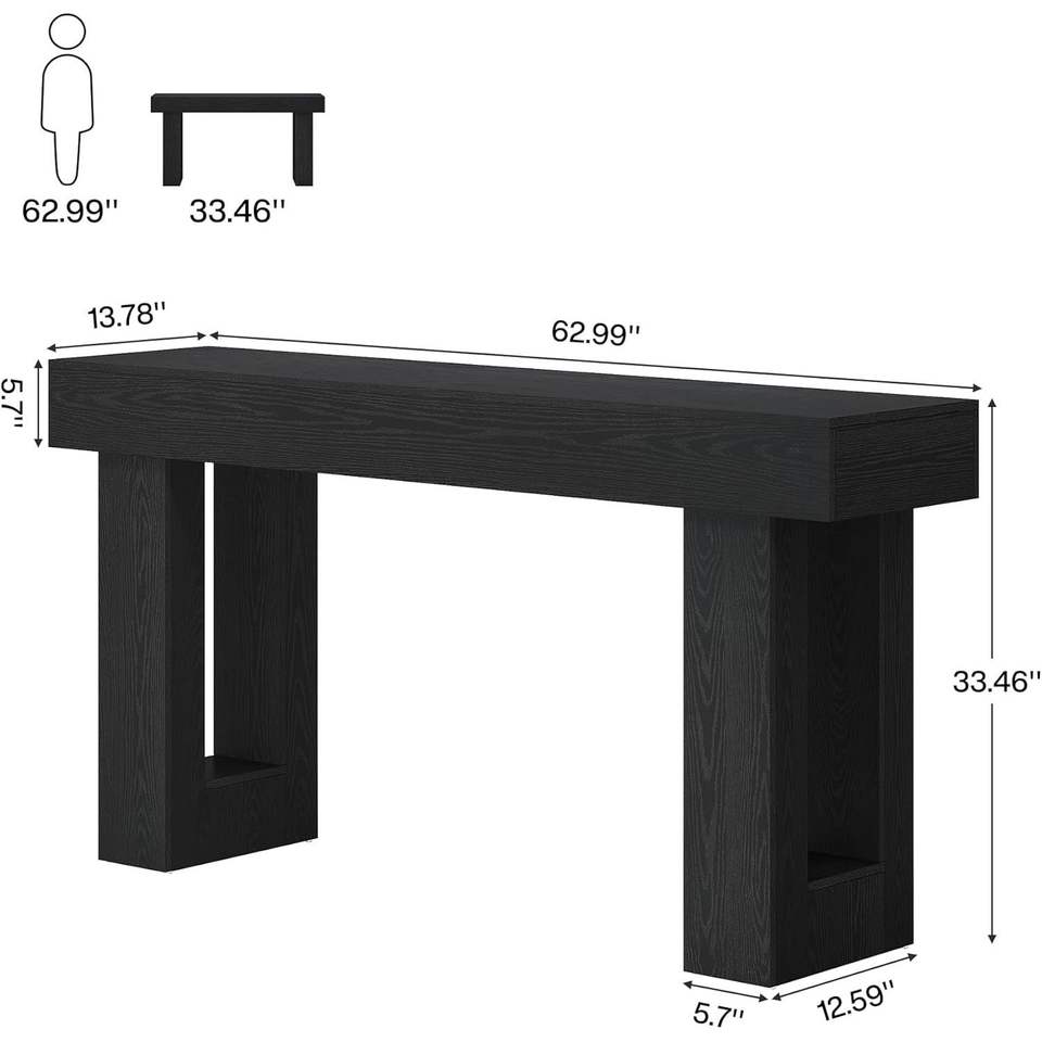 63-Inch Wooden Rectangular Console Table for Behind the Couch Placement