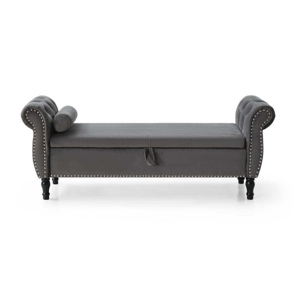 63\" Velvet Rectangular Sofa Stool Multifunctional Storage Solid Wood Legs Tufted Nailhead Trim 1 Pillow Living Room Furniture
