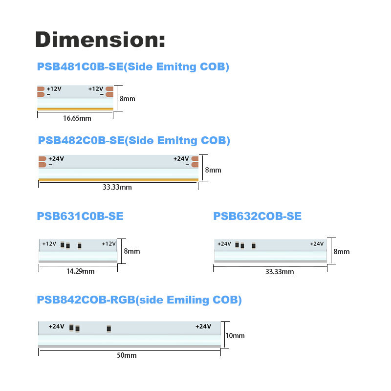Model Number:PSB631COB-SE PSB632COB-SE (RGB Side Emitting COB)