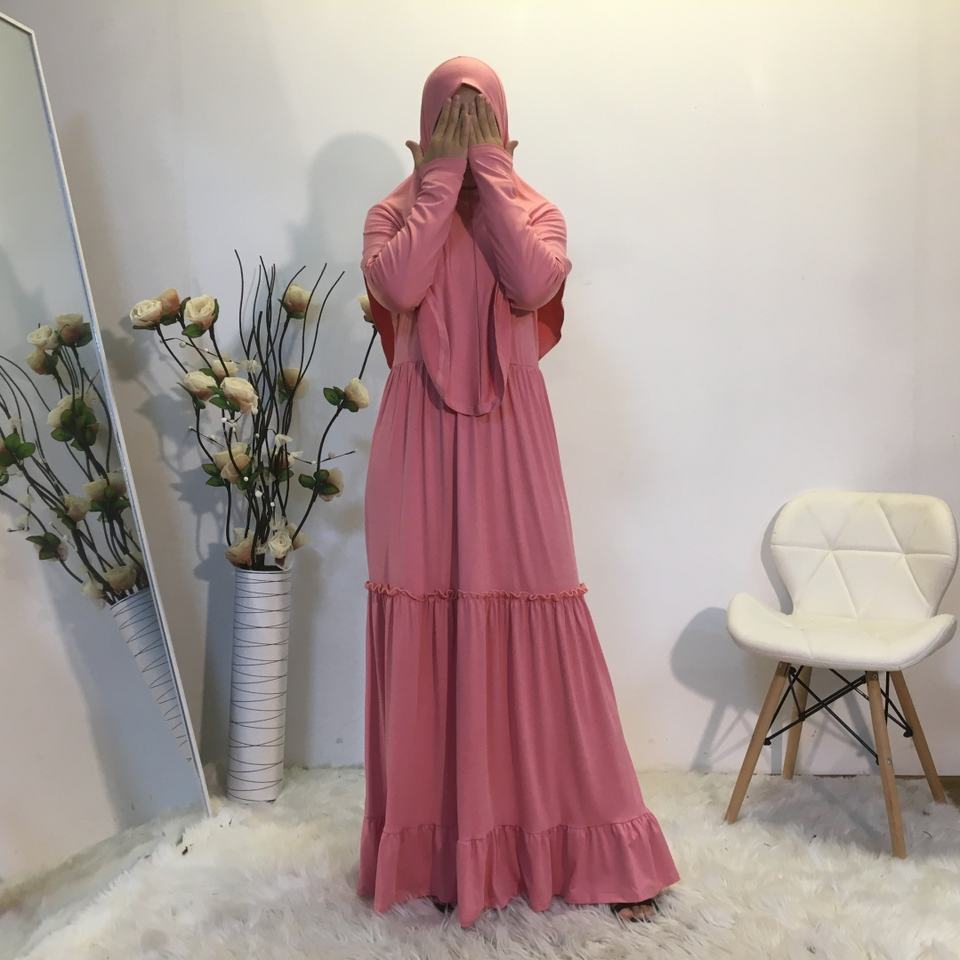 6378# Prayer Long Sleeve Sets Robe Islamic Abaya Jilbab Khimar Muslim Women Praying Hijab Dresses