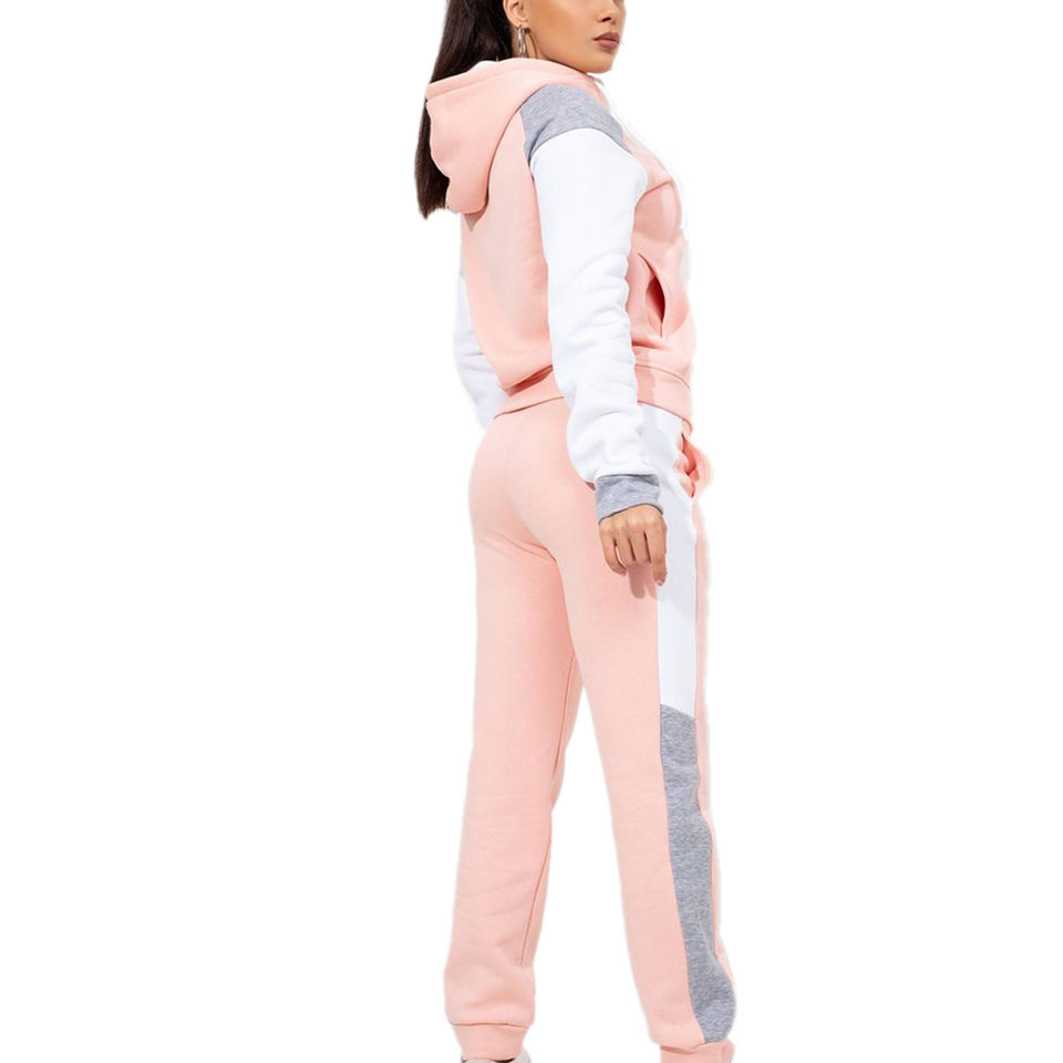 65% Cotton 35% Polyester Racing White & Pink Color Athletics Club Full Zip Hood Women's Cropped Tracksuit Breathable
