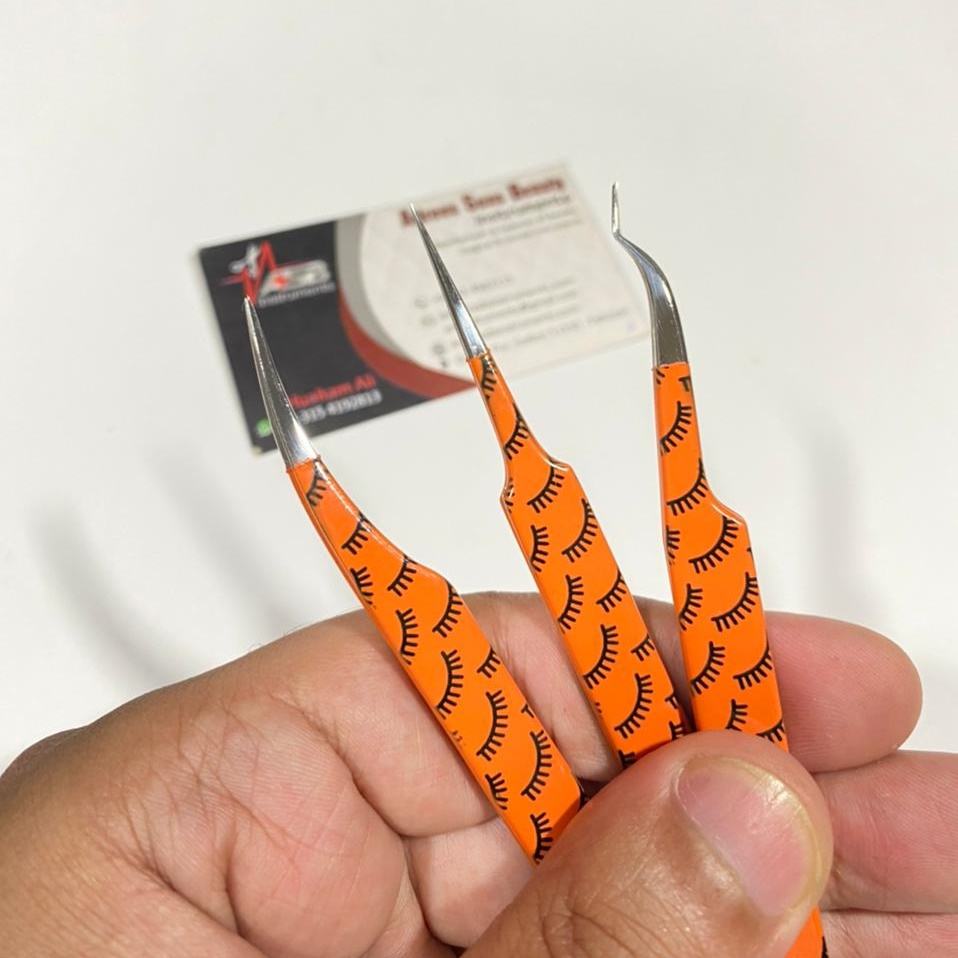 65 Degree Angle Lash Print Eyelash Tweezers Paper-Coated Slim Boot with Stainless Steel Pointed Tip Eyelash Extension Tweezers