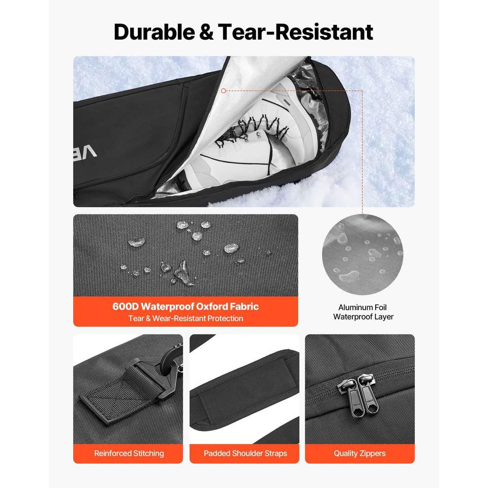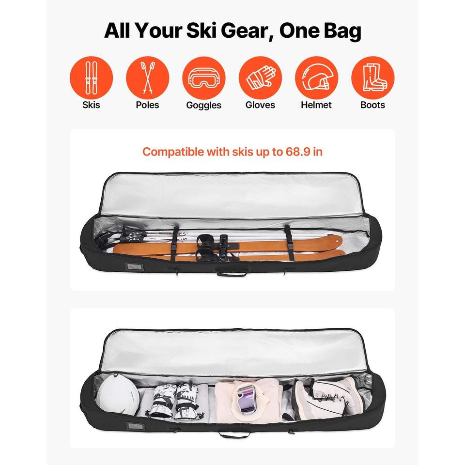 65 In/165 cm Padded Snowboard Skis Bag 600D Waterproof Oxford Fabric Adjustable Inner Straps for Air Travel-Black Ski Poles