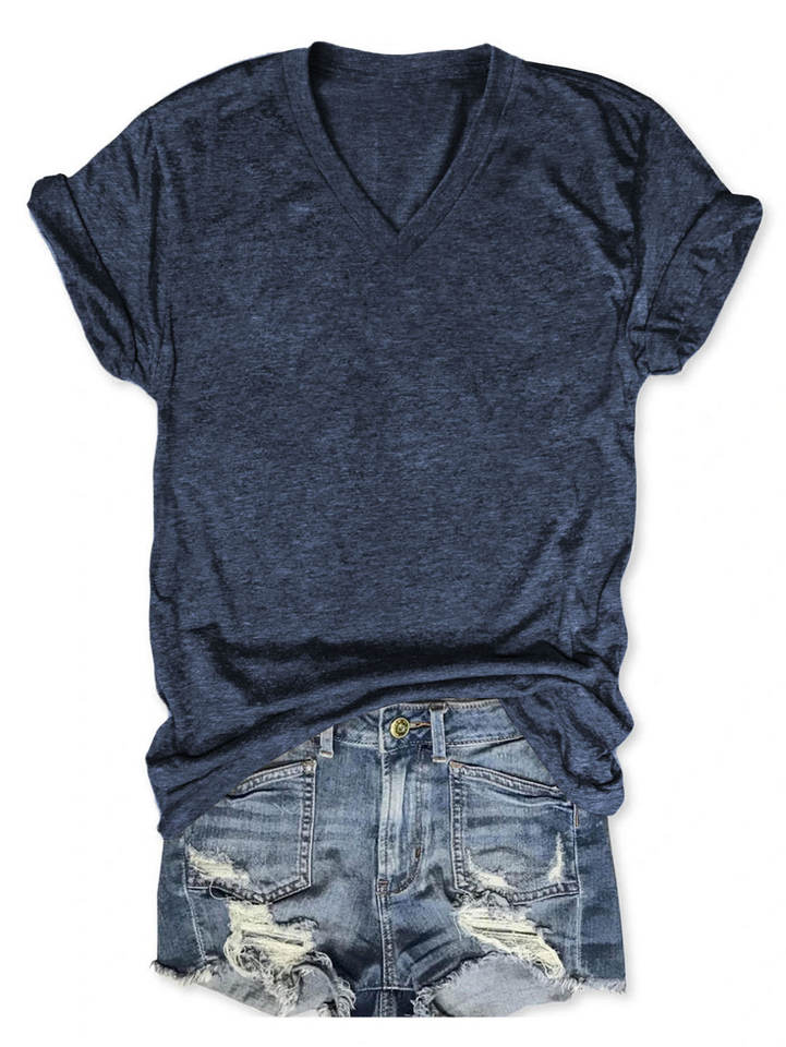 Polyester/Cotton Casual V Neck Short Sleeve Solid Breathable High Quality Canvas Men's T-Shirts