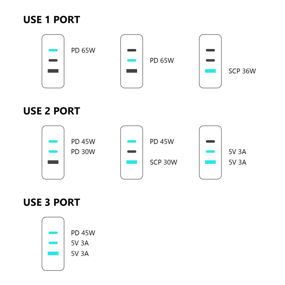 USE 1 Port:PD 45W / PD 65W / SCP 36W