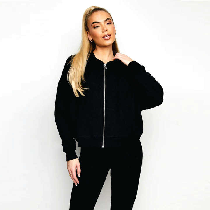 69% Viscose 26% Polyester 5% Elastane Lounge Essential Black Waffle Full Zip Through Womens Hoodie