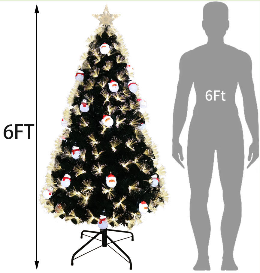 6FT Green PVC Fiber Optic Artificial Christmas Tree with Santa Snowman Decorations for Festive Celebrations