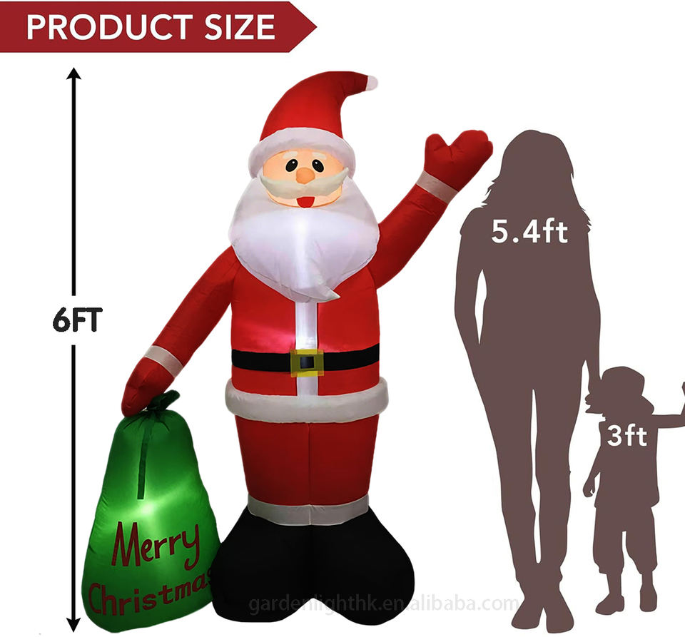 6FT Light LED IP44 Waterproof Eco-friendly Inflatable Santa Claus Gift Bag Outdoor Holiday Yard Christmas Decoration Home Garden