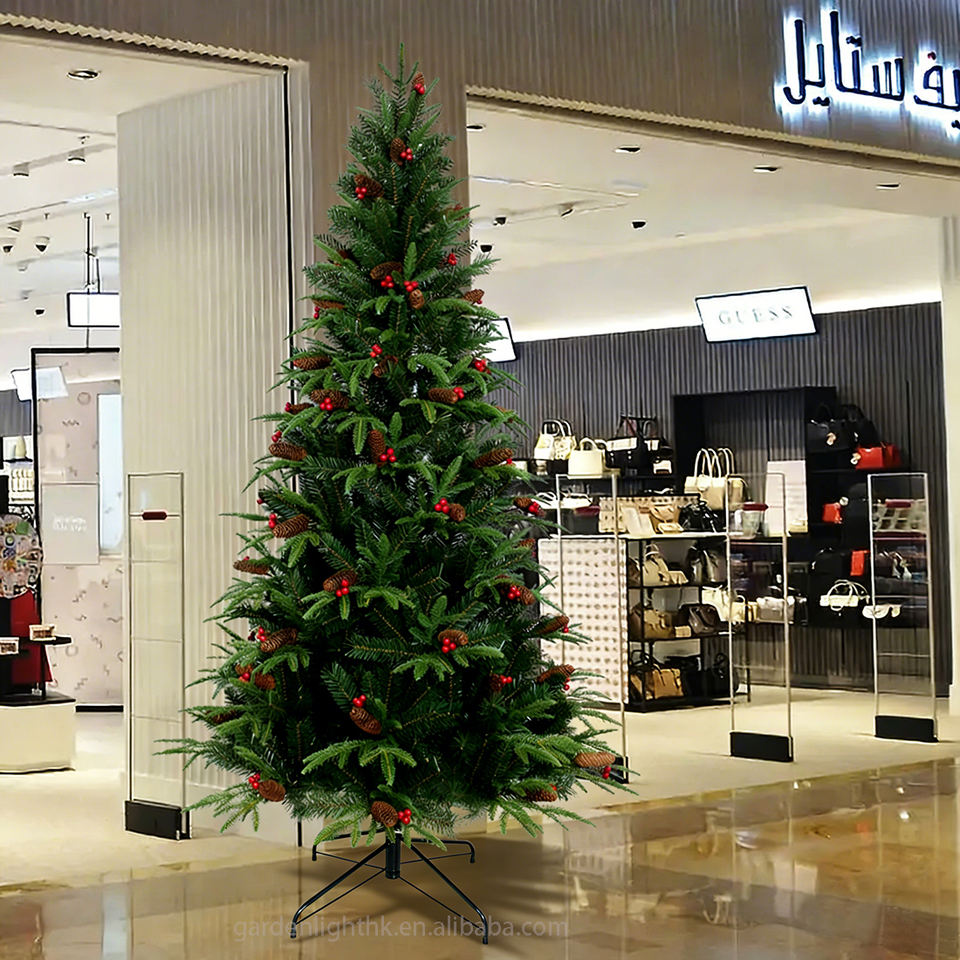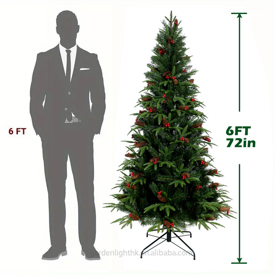 6FT Luxury PE PVC Artificial Green Christmas Tree Pine Cones Red Berries-Eco-Friendly Metal Base Holiday Decor for Home/Office