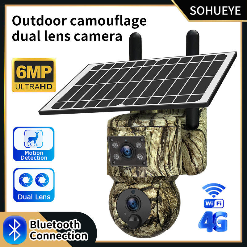 6MP Camouflage CCTV Solar Network Camera Binocular 6.0 Million HD Full Color Outdoor 4G Network Camera for Hunting Decoy