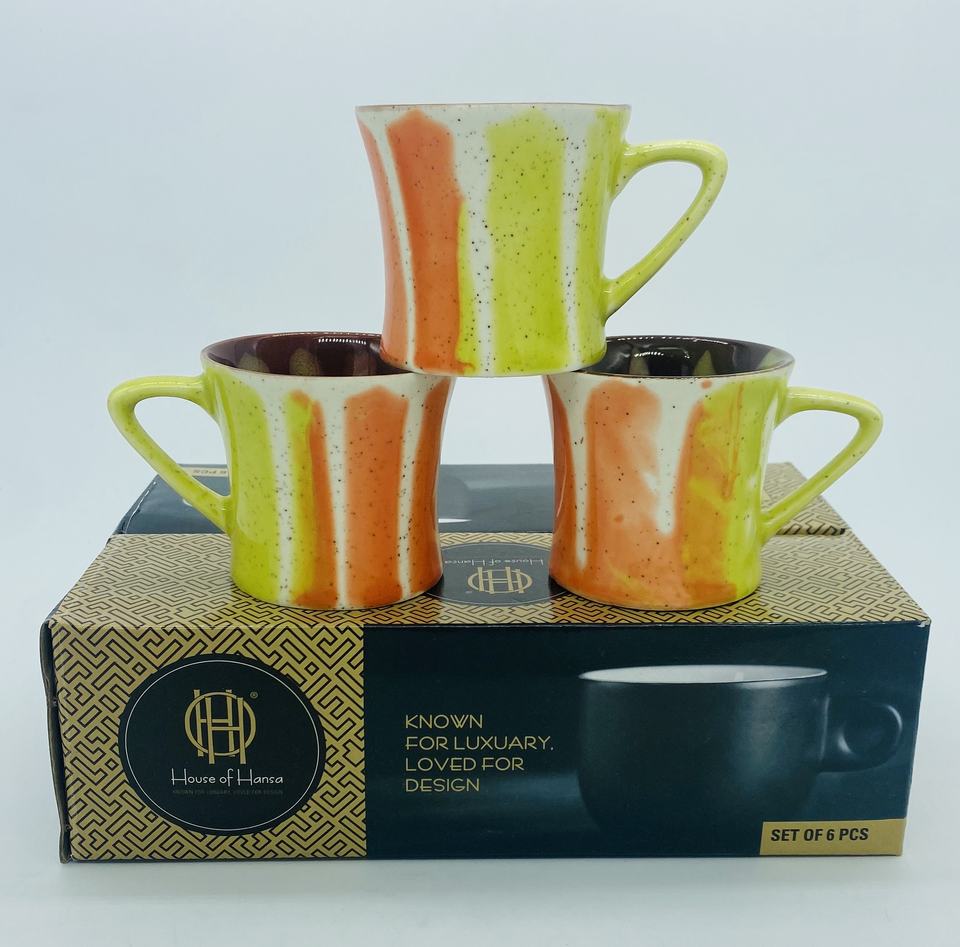 6PC Ceramic Modern Design Mugs Set Assorted Styles & Colors 6oz Capacity Dishwasher & Microwave Safe for Party Gift Boxes
